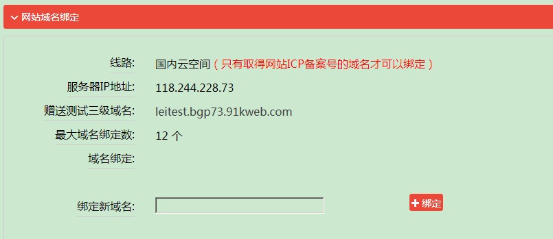 國外空間,域名不需要備案,直接在“網站域名綁定”中綁定對應域名即可。如果是國內空間,域名先要備案成功后才能綁定使用,如果網站沒有填寫公安基礎信息,綁定時會有提示,要求先填寫相應的信息,如下圖: